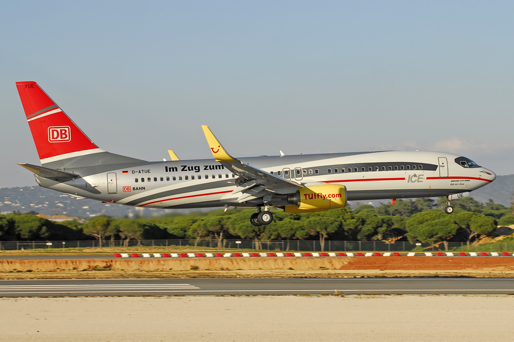 Há algum tempo que a TuiFly tem nos seus aviões algumas pinturas especiais, como já falei aqui. No início deste ano esta companhia pintou mais dois aviões: D-ATUC e D-ATUE. As pinturas especiais que estes aviões têm são alusivas ao Deutsche Bahn, a companhia de comboios da Alemanha.