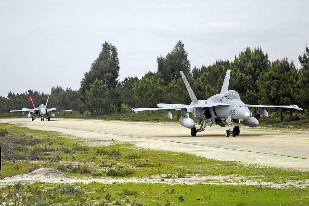 Antes de mudarmos de local conseguimos fotografar 2 EF-18 da Força Aérea Espanhola a taxiar.